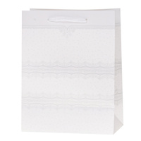 Torebki prezentowe Lux białe z brokatem Horyzont 12 sztuk