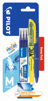 Pióro kulkowe Frixion Pilot niebieskie + wkład Frixion niebieski x3+klej szybkoschnący + gumka owalna blister