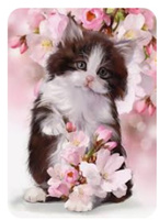 Diamentowa Mozaika Kotek biały na gałęzi w różowych kwiatach NO-2000392