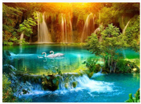Diamentowa Mozaika Krajobraz pełnia księżyca nad jeziorem z liliami NO-2003124