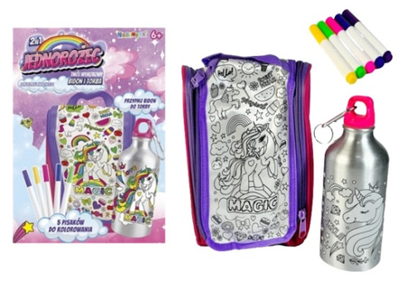 Bidon 500ml z Jednorożcem i torbą do kolorowania