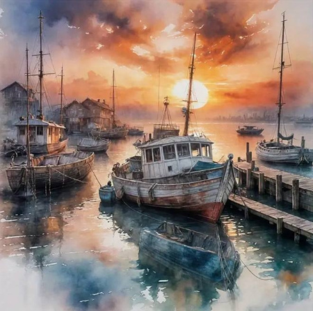 Diamentowa Mozaika Statek w porcie wioski rybackiej NO-2003022