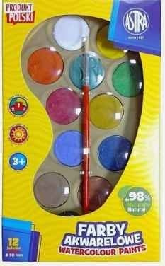 Farby akwarelowe Astra 12 kolorów pędzelek