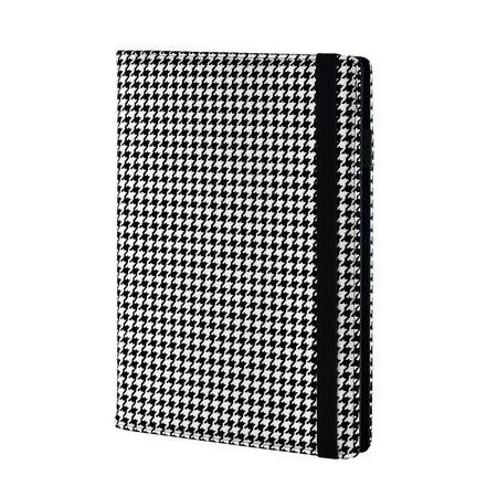 - Okładka ręcznie wykonana z dwuwarstwowego poliuretanu. Zewnętrzna warstwa jest z zamszowego wypukłego zamszu przyjemnego w dotyku.Okładka jest w wersji kolorystycznej czarno-białej we wzór pepitka. Wnętrze wykończone czarnym zamszem. Seria Moden...
