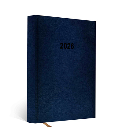 - Kalendarz książkowy w twardej skóropodobnej oprawie ze wstążką. Układ kalendarium dzienny. 336 stron. Wymiary 143x211 mm