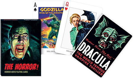 Karty do gry z oryginalnymi awersami przedstawiającymi plakaty klasyków kina z gatunku horrorów.