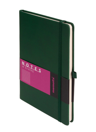 - gramatura: 70 g,liczba stron: 192, okładka: twarda, materiał: skóra ekologiczna,wymiary: 142x203 mm, pionowa gumka zamykająca, gumka na długopis,zaokrąglone rogi, wyklejka z czarnego papieru ozdobnego , wnętrze: kratka,koperta na luźne karteczki...