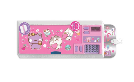 - Nietypowy wielofunkcyjny piórnik z akcesoriami! Każdy przycisk otwiera nową przegródkę do schowania różnych drobiazgów. Piórnik zawiera dwie zamykane komory na przybory szkolne, jedną szufladkę, 1 mini-pojemnik, wysuwany podstawowy kalkulator, w...