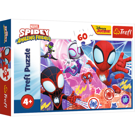 Bohaterska przygoda to puzzle składające się z 60 elementów, zaprojektowane z myślą o małych fanach bajki Spidey.