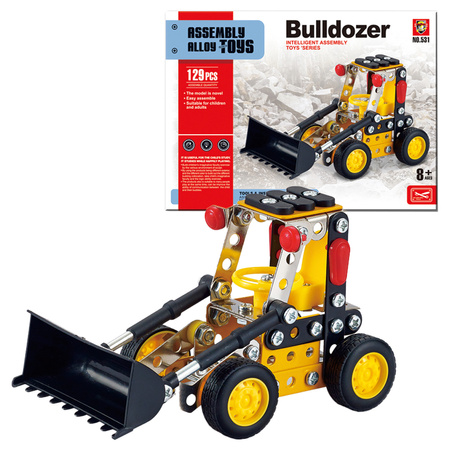 Spychacz do skręcania 129 elementów, metalowe elementy, spychacz 14 x 6.5 x 8 cm