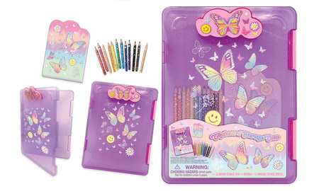 Teczka na przodzie ma ozdobny klips, dzięki któremu można użyć jej również jako podkładki do pisania lub malowania.